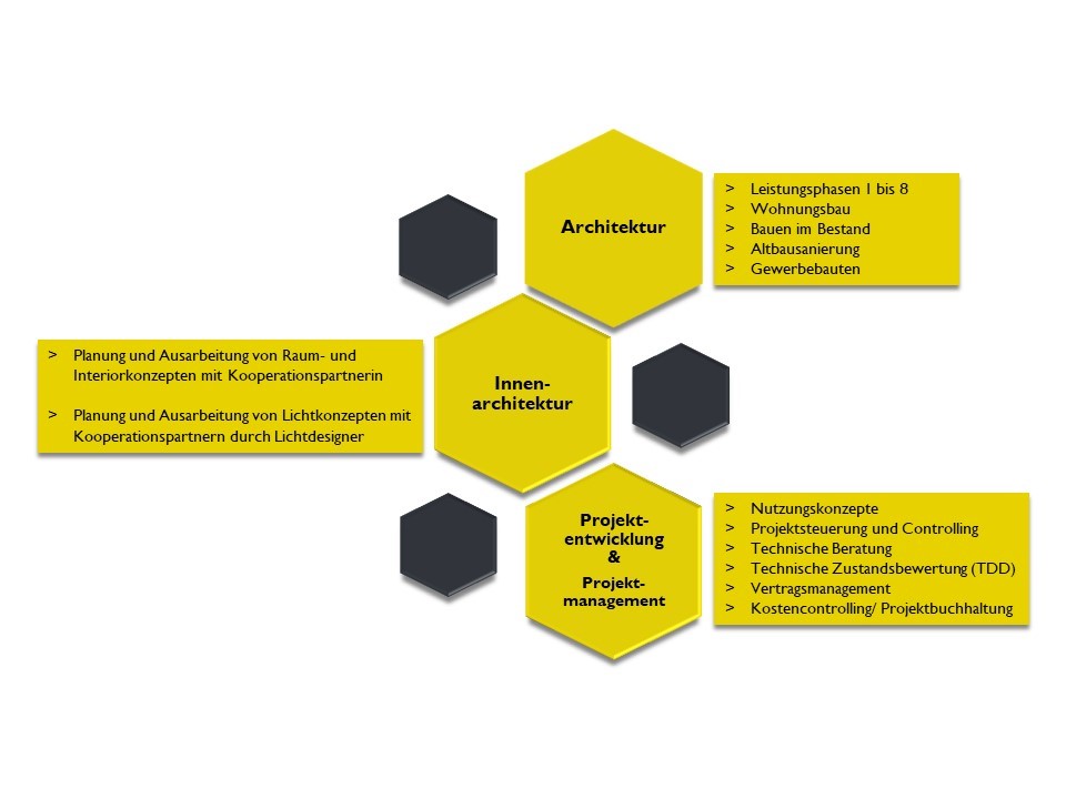 Wir bieten Ihnen ein umfangreiches Leistungspaket gemäß der Honorarordnung für Architekten und Ingenieure (HOAI). Unser Leistungsspektrum umfasst alle Phasen der Planung und Ausführung, bis hin zur Bauleitung und Objektüberwachung (Leistungsphasen 1-8). Des Weiteren übernehmen wir, wo es die Größe des Bauvorhabens erfordert, die Koordination von Fachplanern, Sachverständigen und Gutachtern, wie den des Sicherheits- und Gesundheitsschutzes (SiGeKo), Brandschutzes, Statik und Energieberatung (EnEV) und arbeiten im konstruktiven Dialog mit diesen Fachingenieuren zusammen.